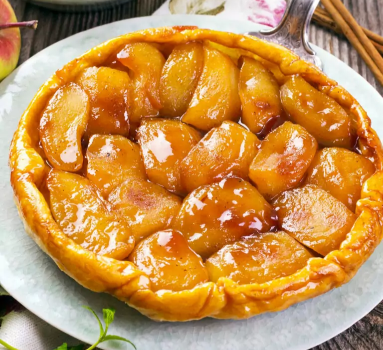 Pommes caramélisées et pâte dorée, servie tiède. Un classique fondant et gourmand.